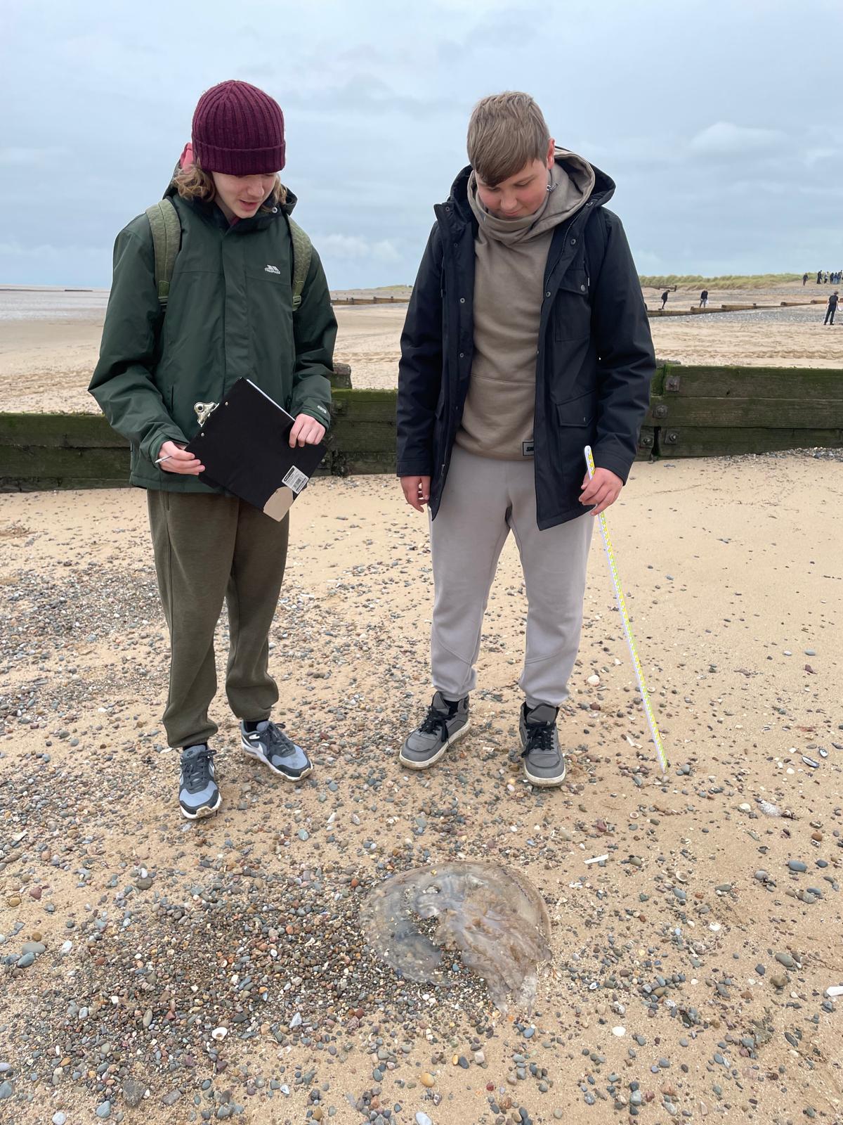 The group first headed to Fleetwood Beach to investigate coastal processes, where they conducted a groyne drop height survey to assess whether hard engineering is effectively controlling longshore drift in the area.